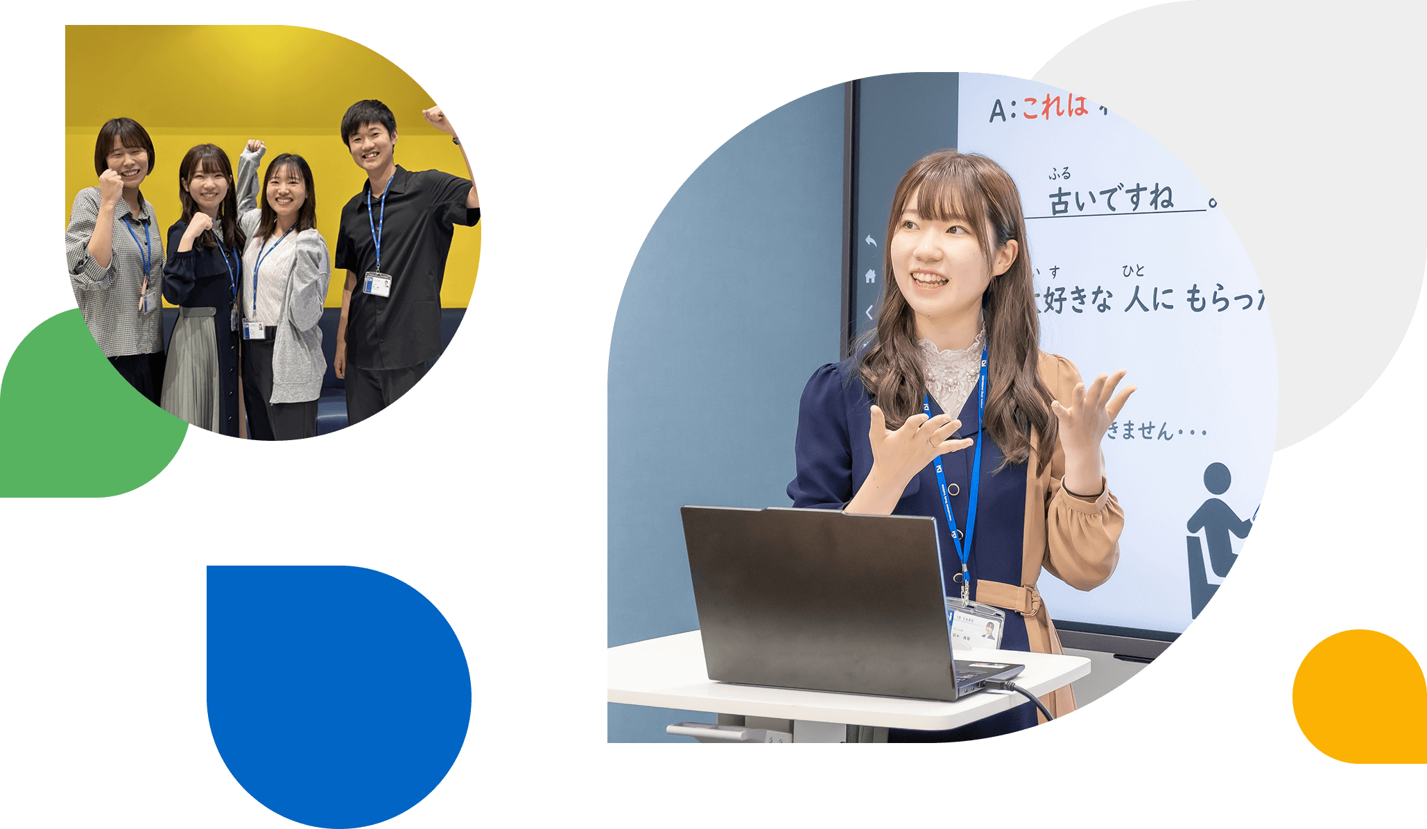 ISI日本語学校の常勤講師は、「教師」としての専門性と、「企業の一員」としてのビジネススキルの双方が求められます。そのためISI日本語学校では、どちらの場面でも力を発揮できるよう、学校現場だけでなく会社全体で皆さんをサポートしています。