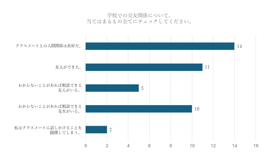 調査では、学校内で91%、学校外で95%の回答者が人間関係を築けていると回答しました。